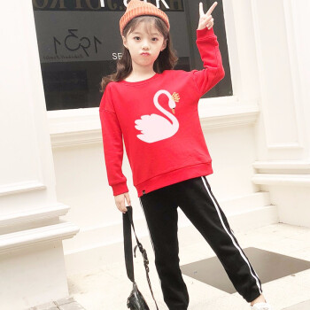 【2つの服】北极绒子供服女性用ガーディアン秋服2019年春新作韩国版子供服の中の子供服の秋の丸襟服の濡れたユニコーン/粉+白鸟/赤120【起球包退】