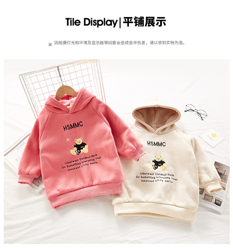 商品名称:馬可小熊子供服女性童衛衣秋冬洋気2020子供レイコート女の子ファッション加絨厚手中大童熊MM 02353ピンク140(身長135 cmをお勧めします)