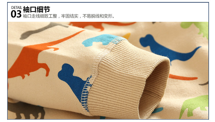この服は春季に似合う服と外装で、コットンの100%のユニホームです。恐竜の図案は子供も大好きです。生地は柔らかくて快適で通気性があります。色はとても清新で、小さいハンサムな男達の審美の標準に適します。貝殻家の服の質は本当にいいです。価格はとても綺麗です。お母さんたちは安心して買うことができますよ。
