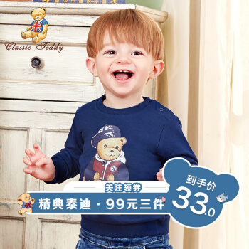 精典泰迪Class ic Teddy子供服子供服男女子供服トープ赤ちゃん外出服ガーディアンA/野球帽熊-深藍120