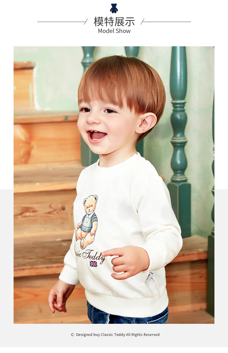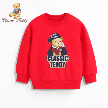 精典泰迪Class ic Teddy子供服男女カバード赤ちゃんが外出服を着ています。ガーディアンA野球帽子熊/大紅100