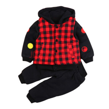 商品名称:兎多多子供服男の子用冬服0-1-2歳男性用ベビー服三点セット厚い乳幼児用外出服ベビーセット赤い80 cm