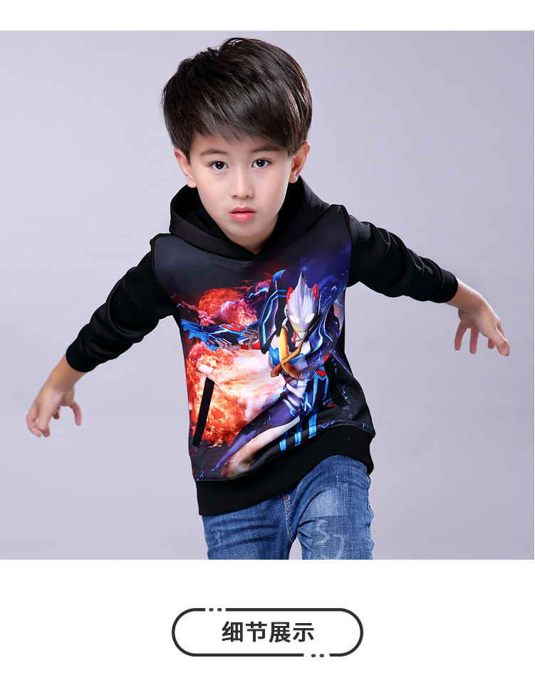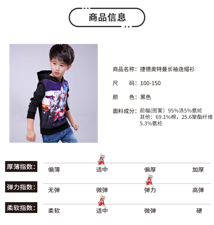 子供の服はウルトラマンスの服です。男の子はレオの春のモデルです。子供用ローブジェットアクスの長袖Tシャツは1-12歳です。男の子は上にいます。ウルトラマンの120ヤードです。参考身長は105-155 cmです。