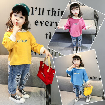 女性の赤ちゃんの服の年齢2019新型の子供服の女性の洋服の帽子のシャツー1-2-5歳のかわない韩国版の女性のコ-トは100%捺染レイコの子供服の下の青い100ヤドの身长の85-95 cm 2-3歳です。