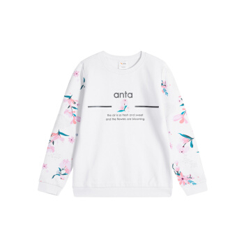 【130-170】ANTA子供少女公式旗艦ファン押染衛衣スポスポーツ春季中大子供用ジット純白-1 160 cm