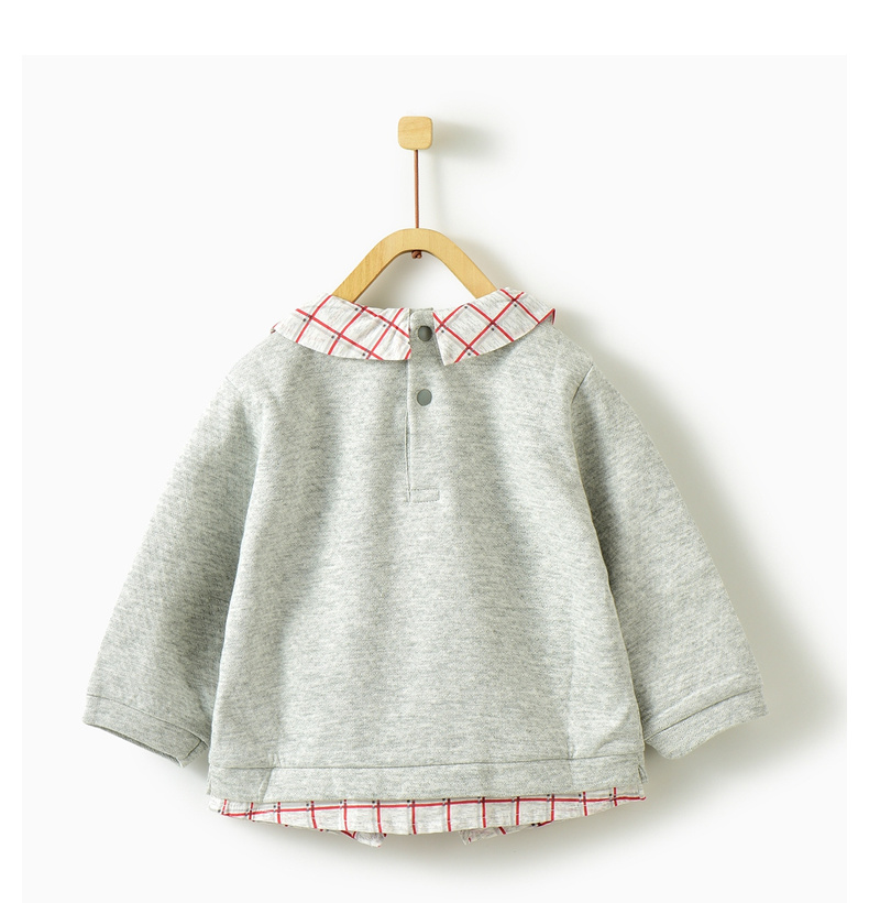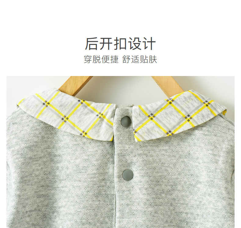 子供の泰春の外出服の1~3歳の男女の赤ちゃんは上の子供の长袖のガパネルの灰色の黄色の格の90 cmを襟に折ります。